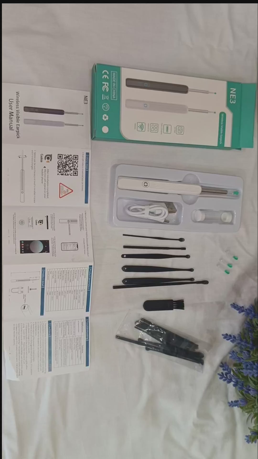 يأتي الجهاز مع عدة رؤوس من السيليكون اللين لحماية جدار الأذن وتجنّب الخدوش.
